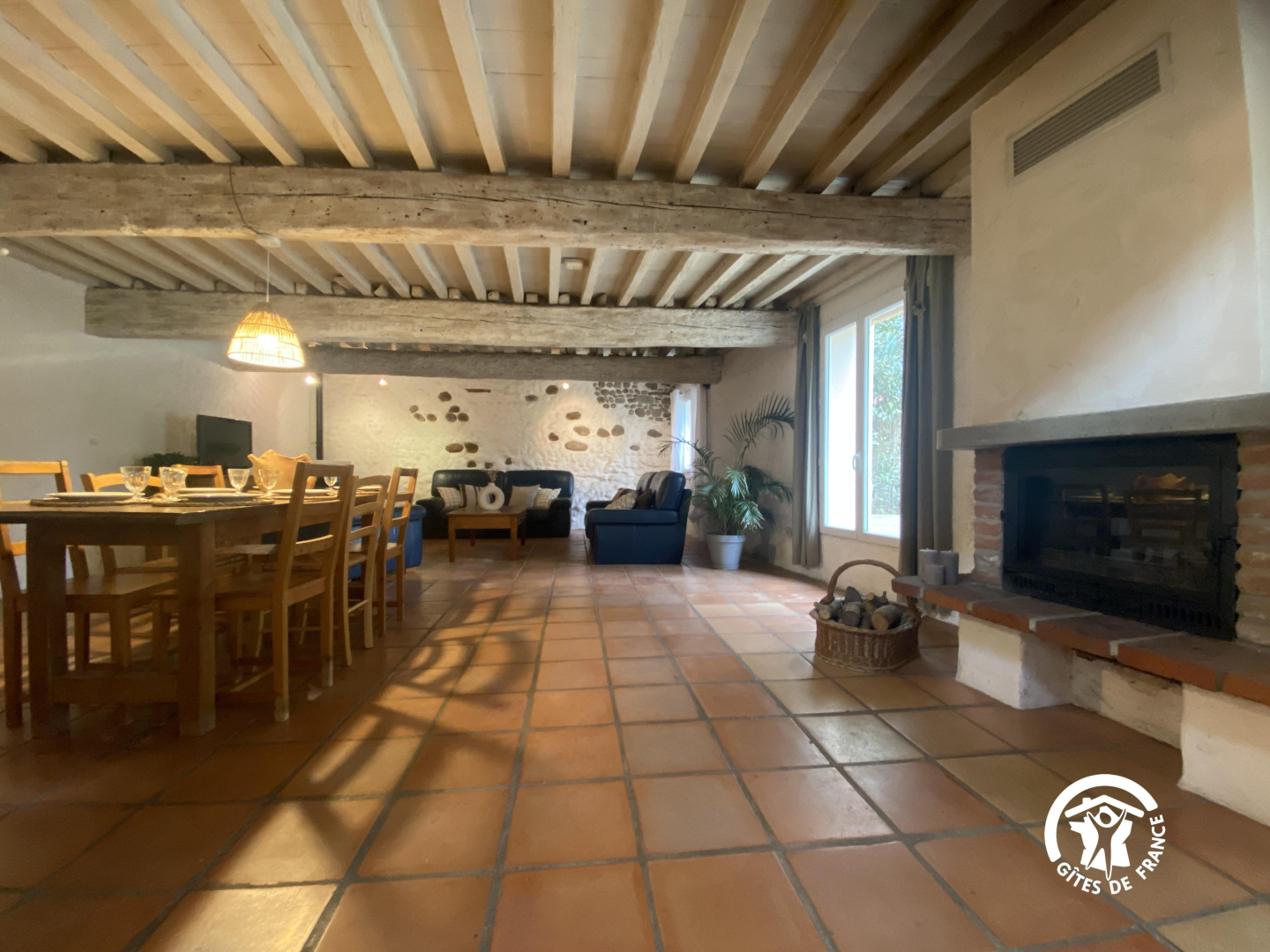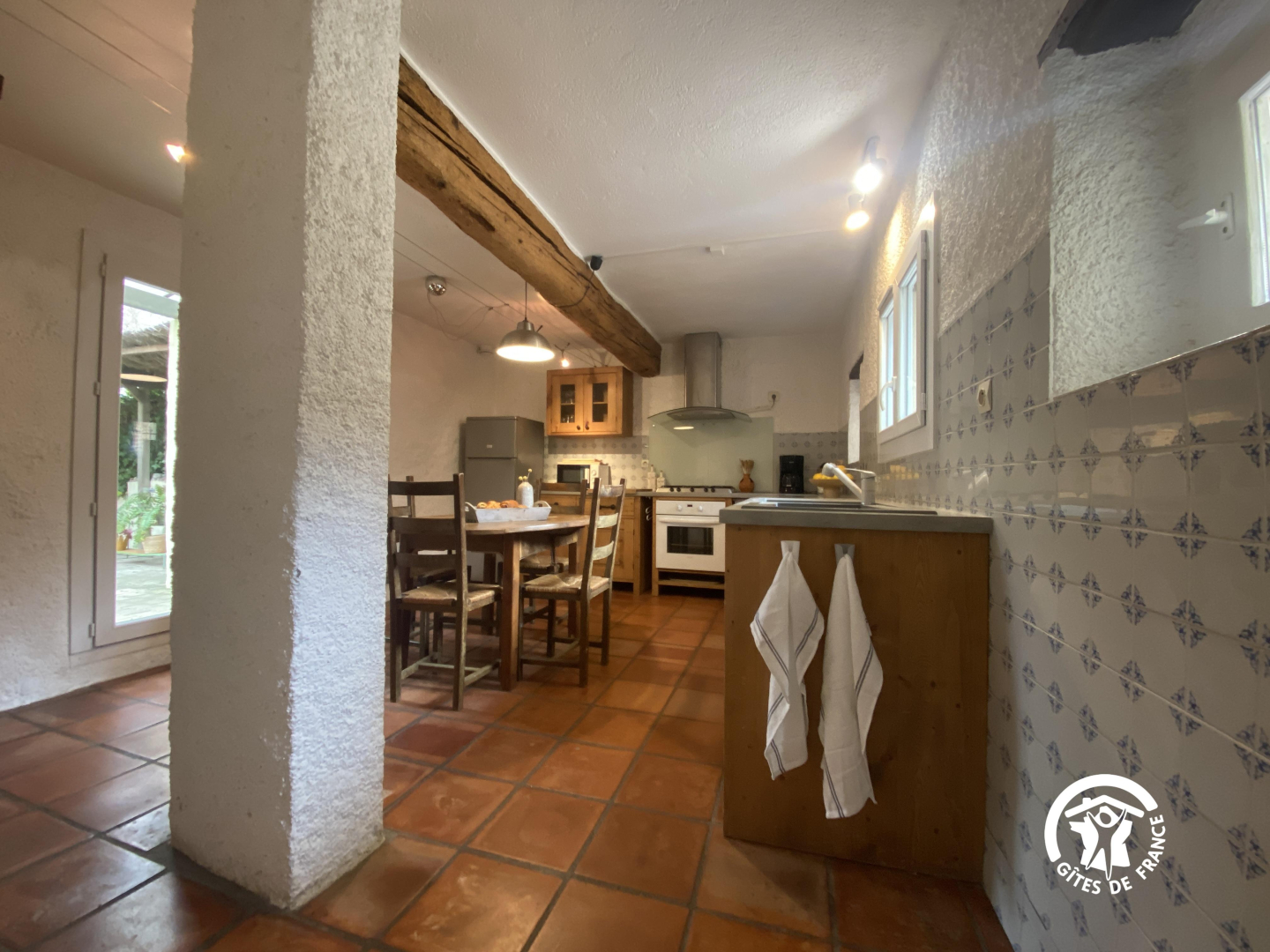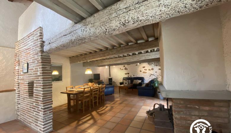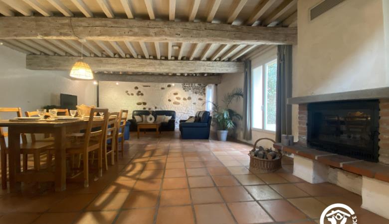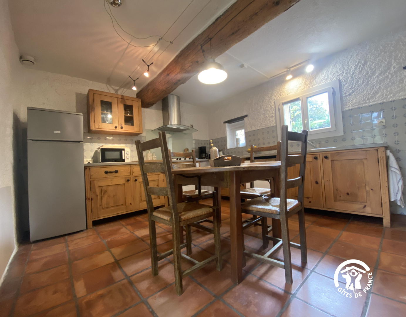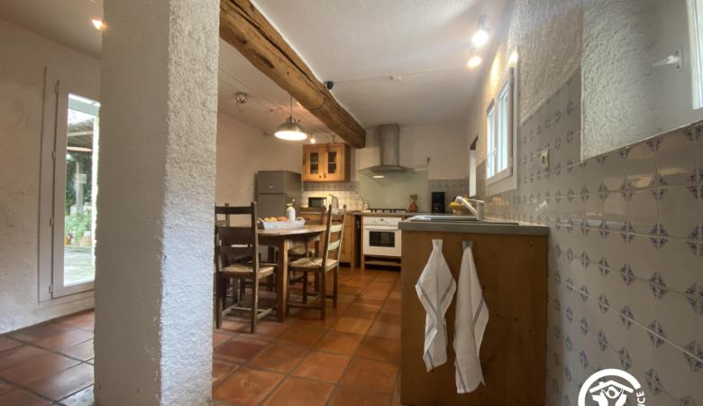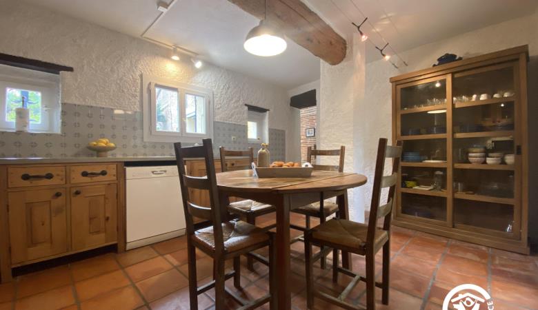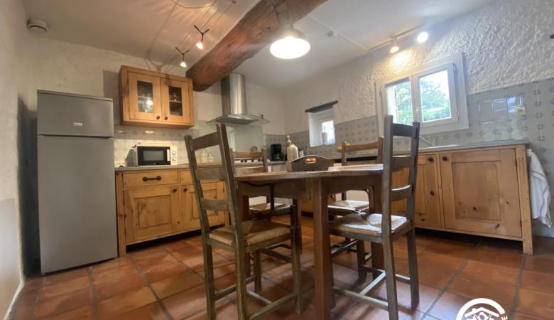 Esta espaciosa masía en plena naturaleza consta de una cocina totalmente equipada, un comedor y un amplio y confortable salón con chimenea y estufa de pellets.