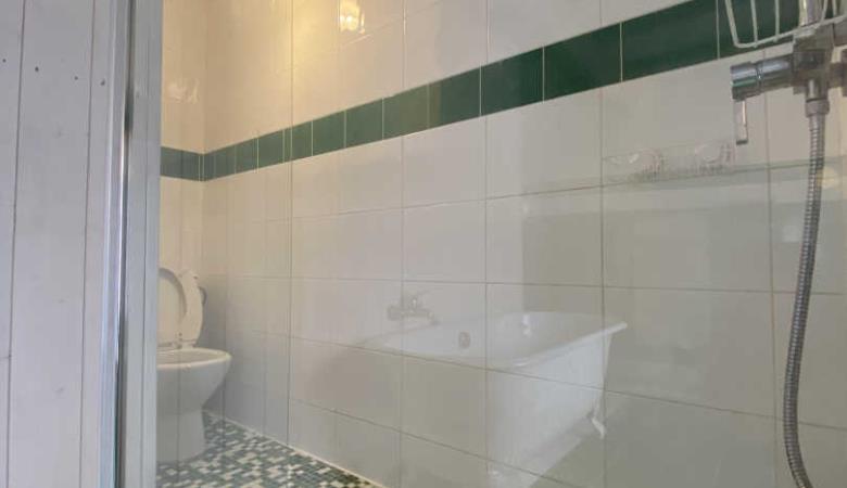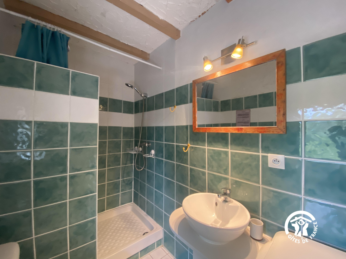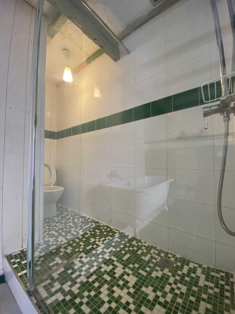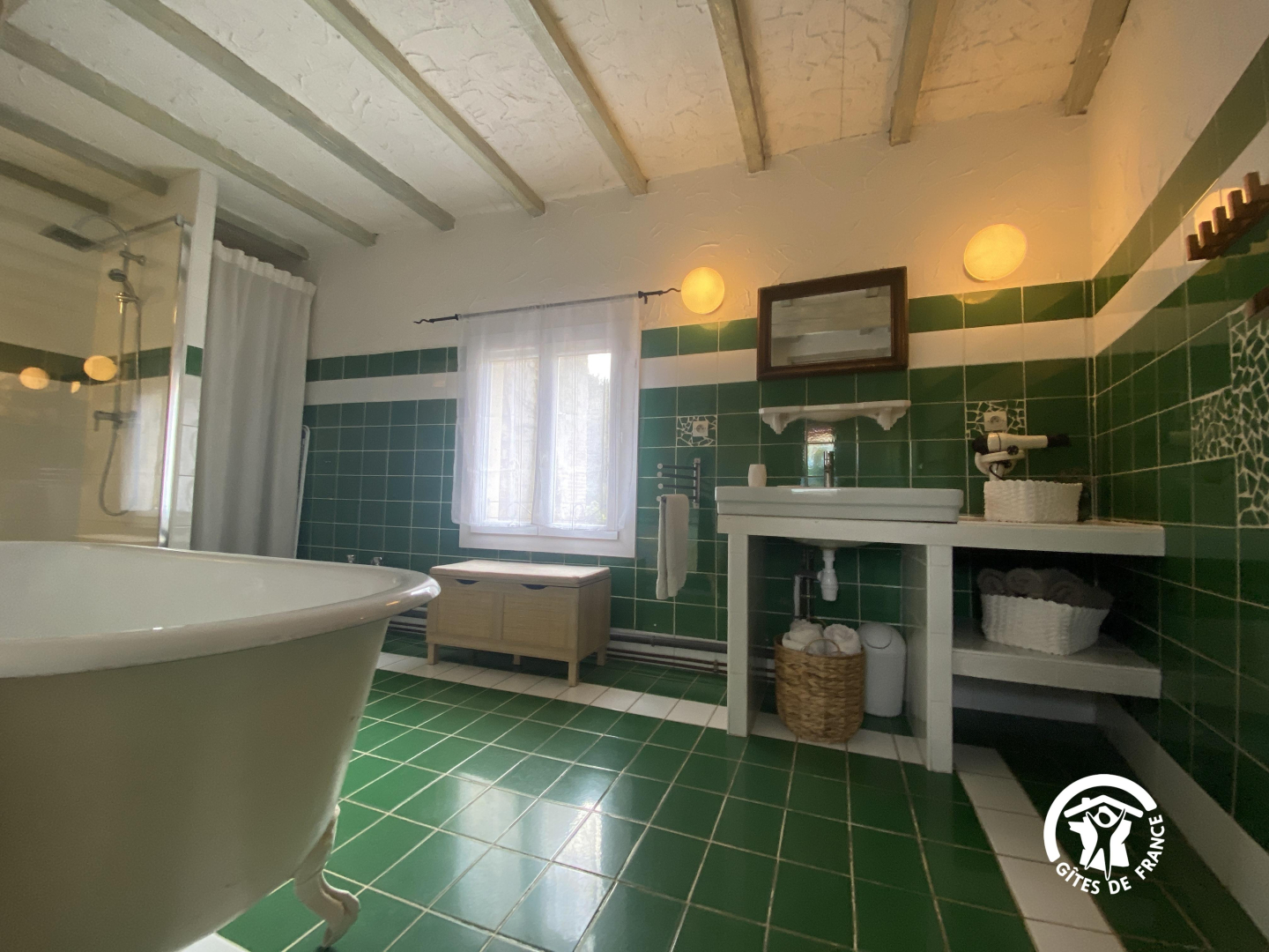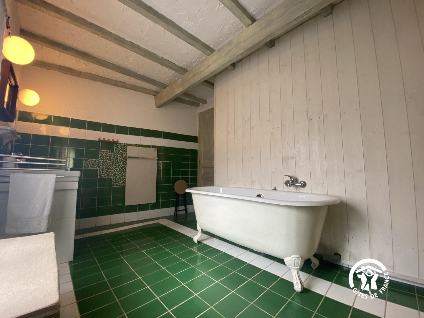 En el segundo nivel, un dormitorio abuhardillado se ha convertido bajo el techo con una cama doble y una cama individual.