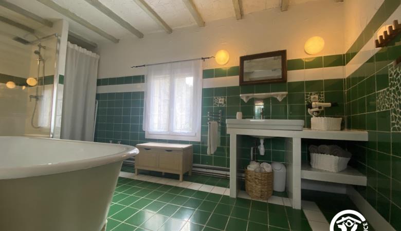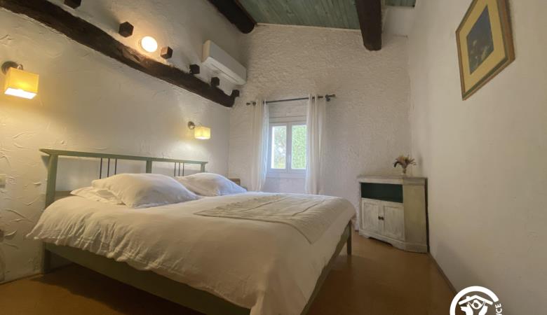 En la primera planta, encontrará dos dormitorios, cada uno con una cama doble (160 cm), un cuarto de baño con WC y ducha, y un segundo cuarto de baño con bañera, ducha y WC, así como un vestidor.